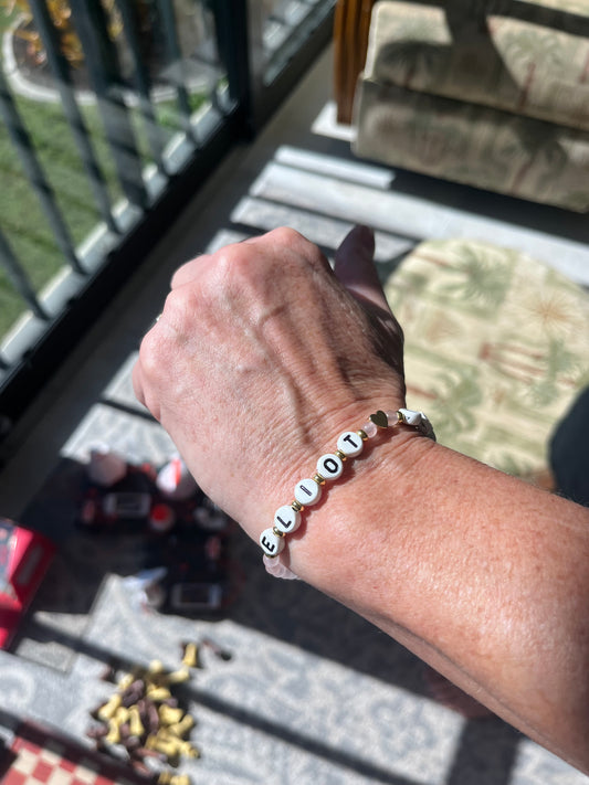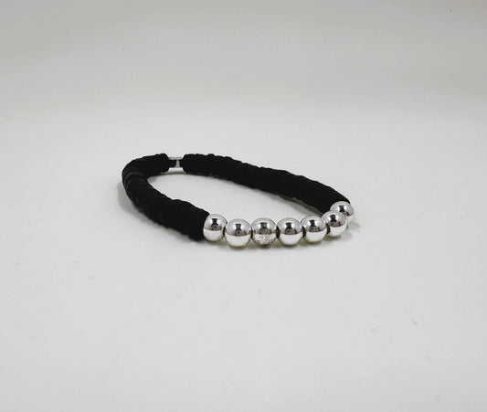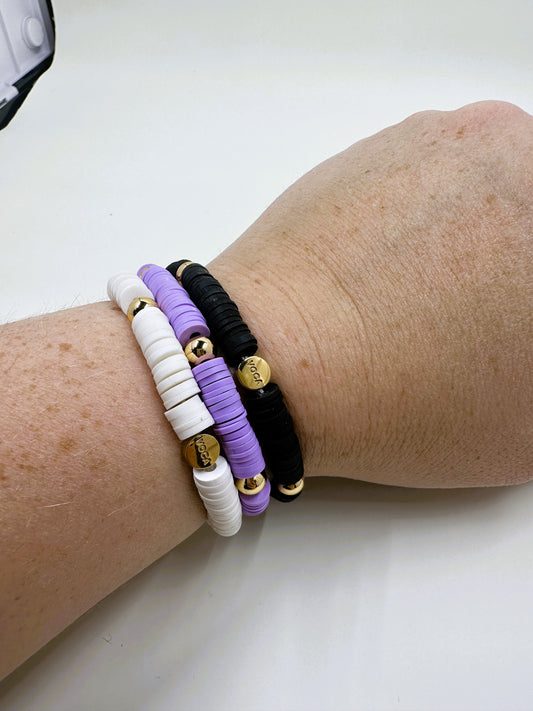 Heishi beads with 6 mm silver or gold-plated accent beads, finished in our signature The Voca Co bead.